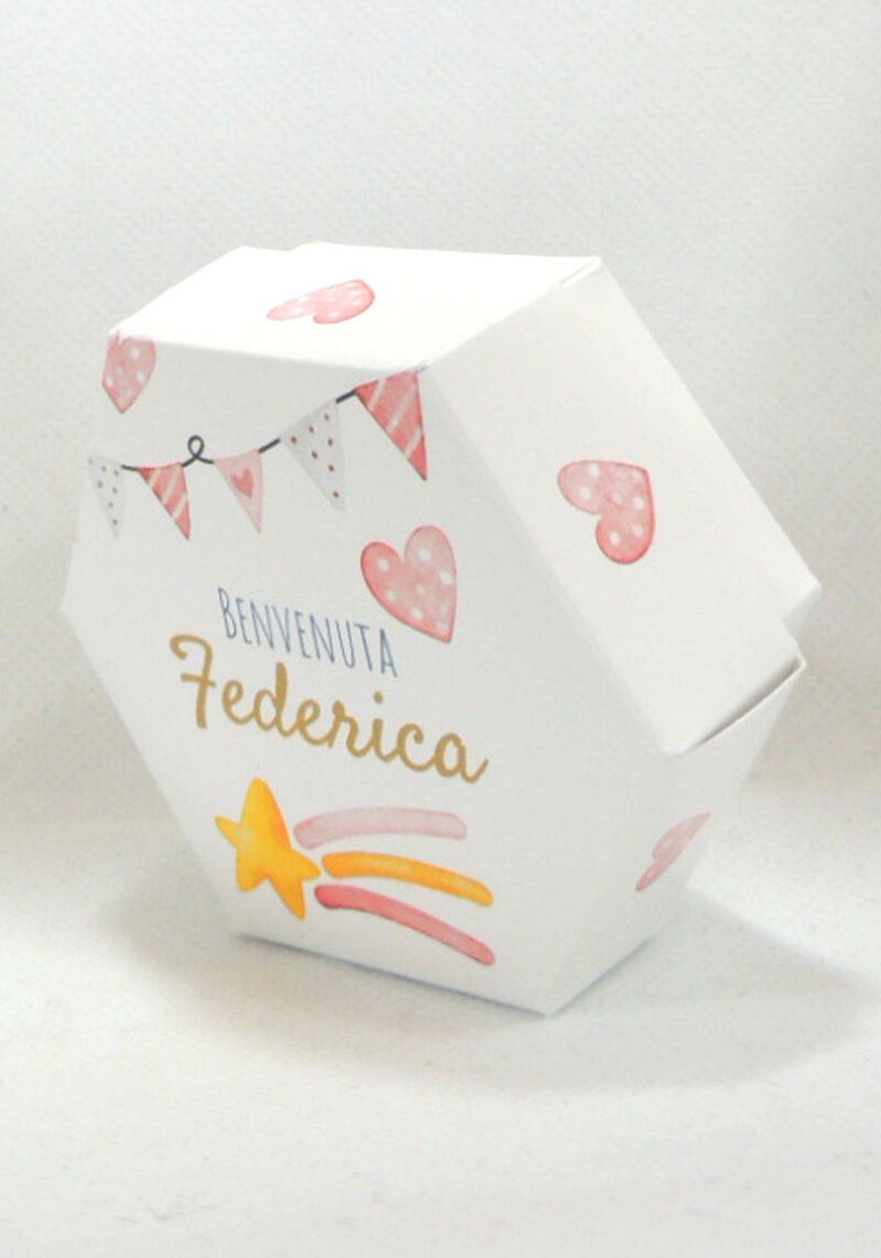 Scatolina personalizzabile in cartoncino, per vari eventi, completa di confetti a scelta